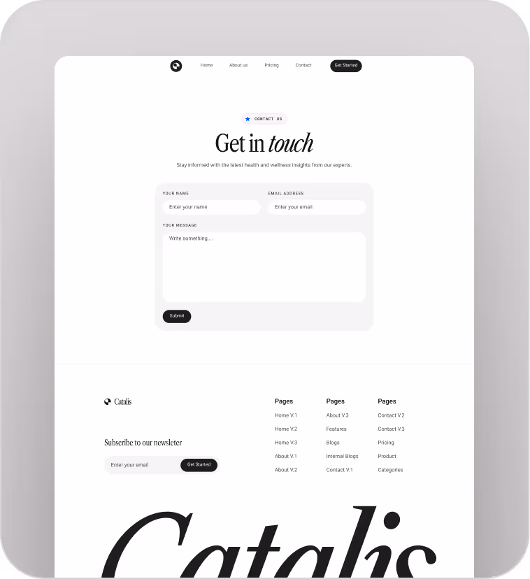 Send us an email to help@temlis.com with your purchase receipt, and we will send you the editable Figma file for the Catalis template.